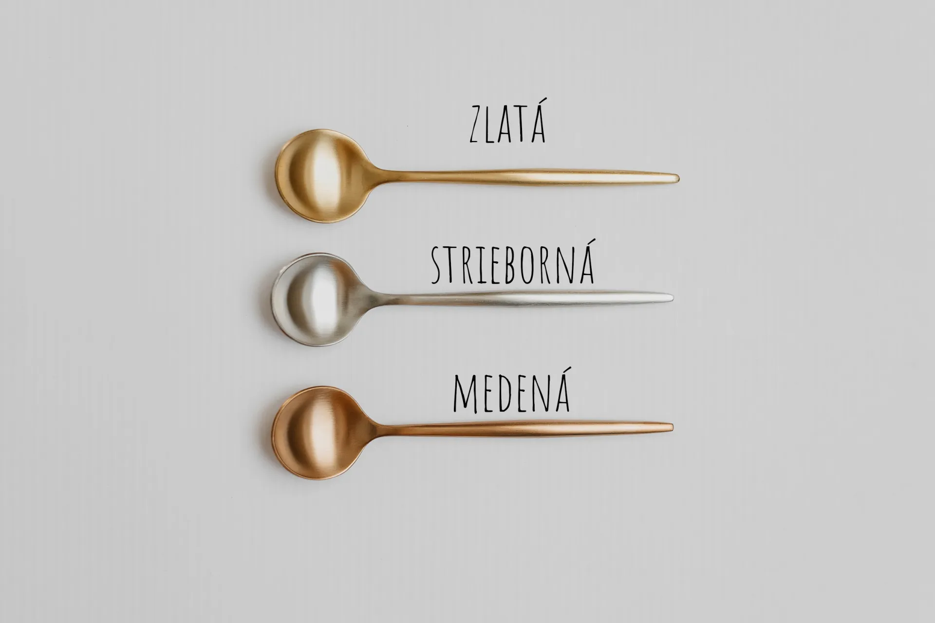 Materiál lyžičky je Stainless Steel, teda nehrdzavejúca oceľ. V prípade striebornej farby produktu, ide o prirodzenú farbu materiálu. V prípade zlatej a medenej varianty produktu, sa jedná o farbenú oceľ. Táto farba sa časom častým používaním môže ošúchať, poprípade neopatrným zaobchádzaním poškrabať.
