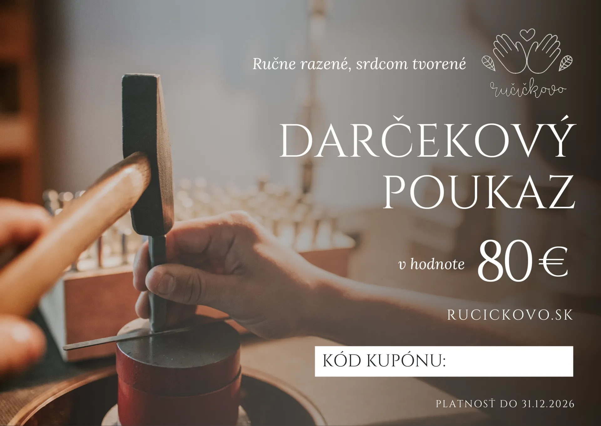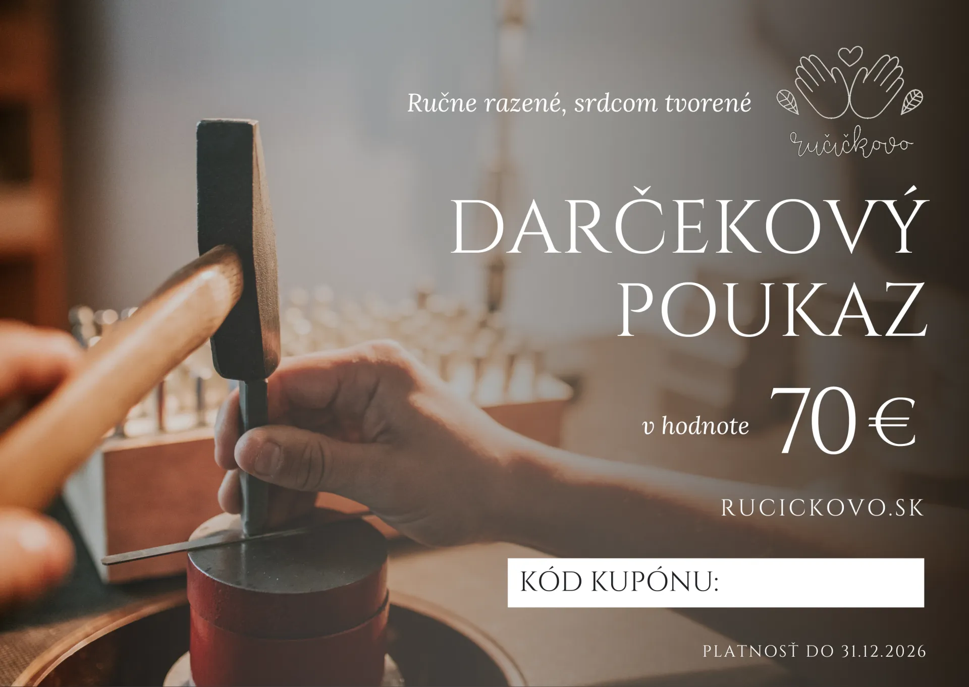 Na nákup produktov našej ručnej dielne na rucickovo.sk počas celej platnosti poukazu.