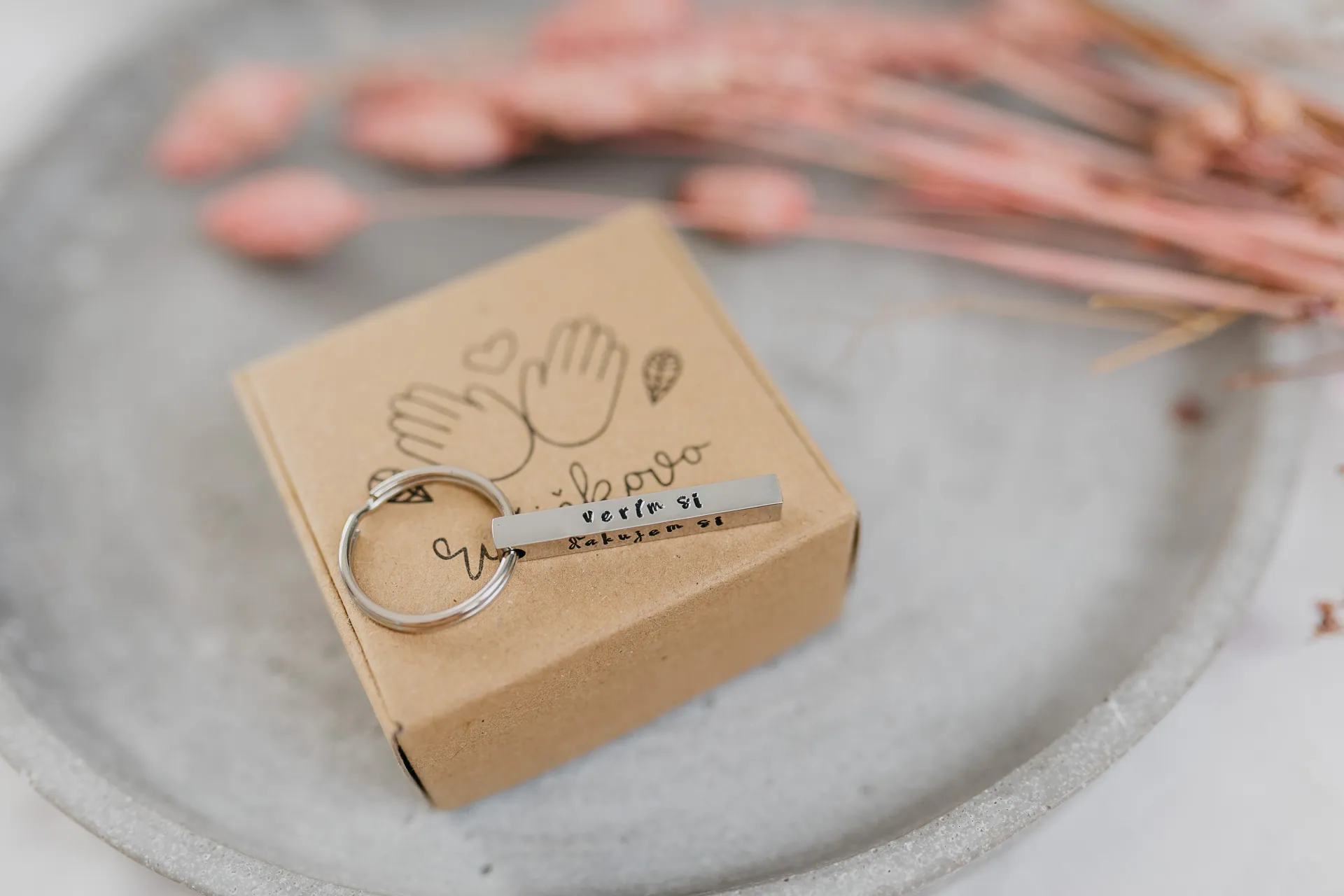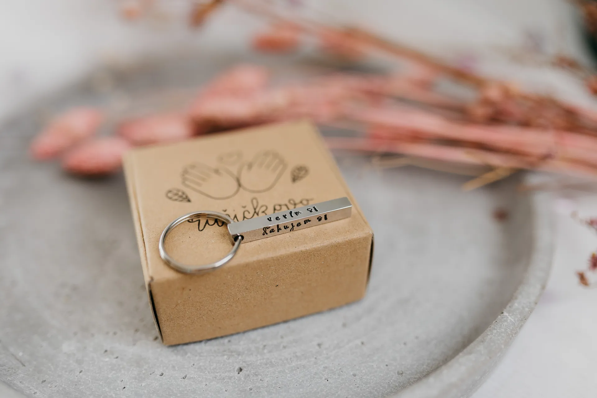 NOVINKA: Ak si ku kľúčenke prajete doplniť ešte malý krúžok s ručne vyrazeným menom partnera, dieťaťa, vnúčat, žiakov alebo iniciálou či dátumom, je to možné cez tento produkt:
