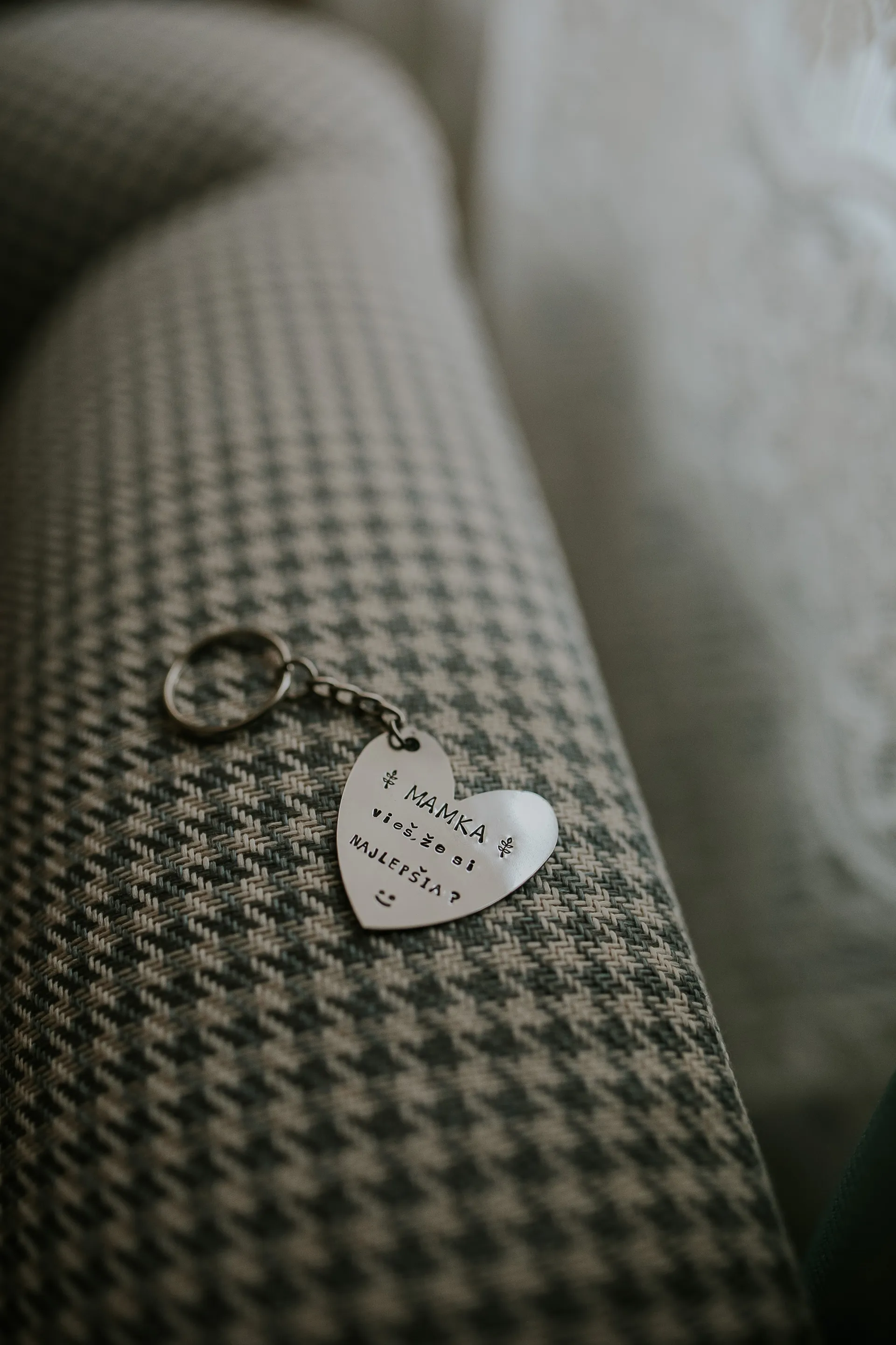 Prívesok na kľúče s ručne vyrazeným textom