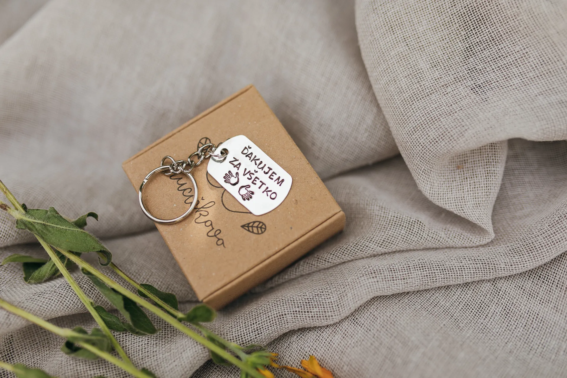Prívesok na kľúče s ručne vyrazeným textom