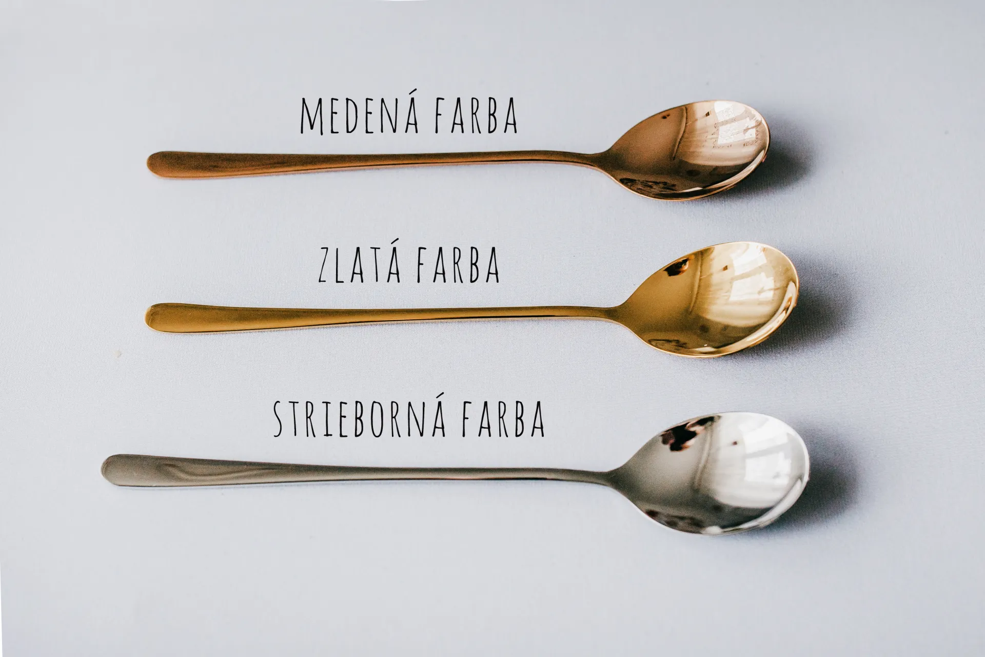 Lyžice sú vyrobené z materiálu Stainless Steel, teda z nehrdzavejúcej ocele. V prípade striebornej farby produktu, ide o prirodzenú farbu materiálu. V prípade zlatej a medenej varianty produktu, sa jedná o farbenú oceľ. Táto farba sa časom častým používaním môže ošúchať, poprípade neopatrným zaobchádzaním poškrabať.