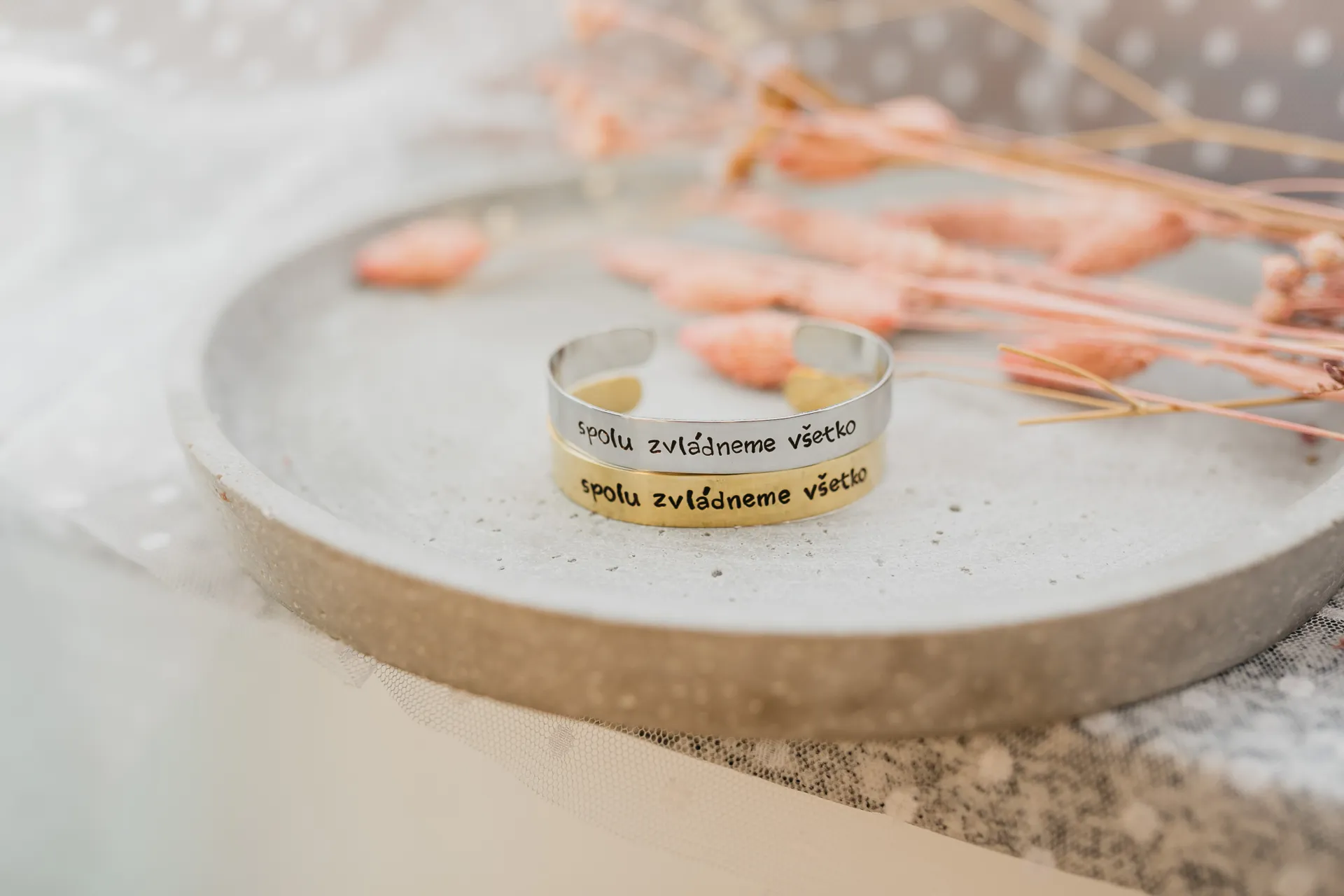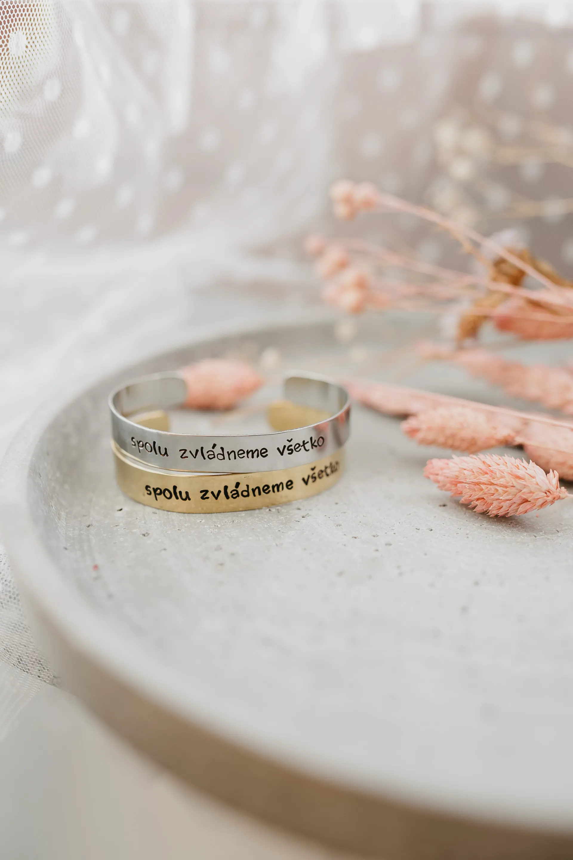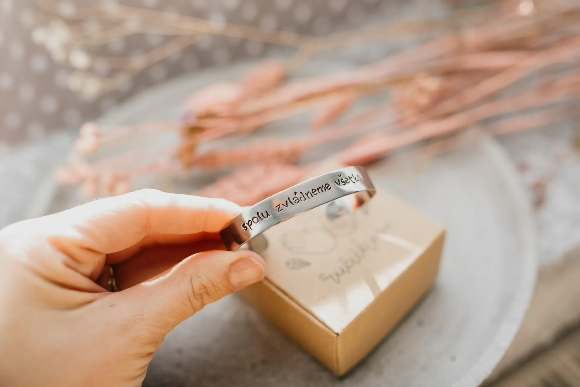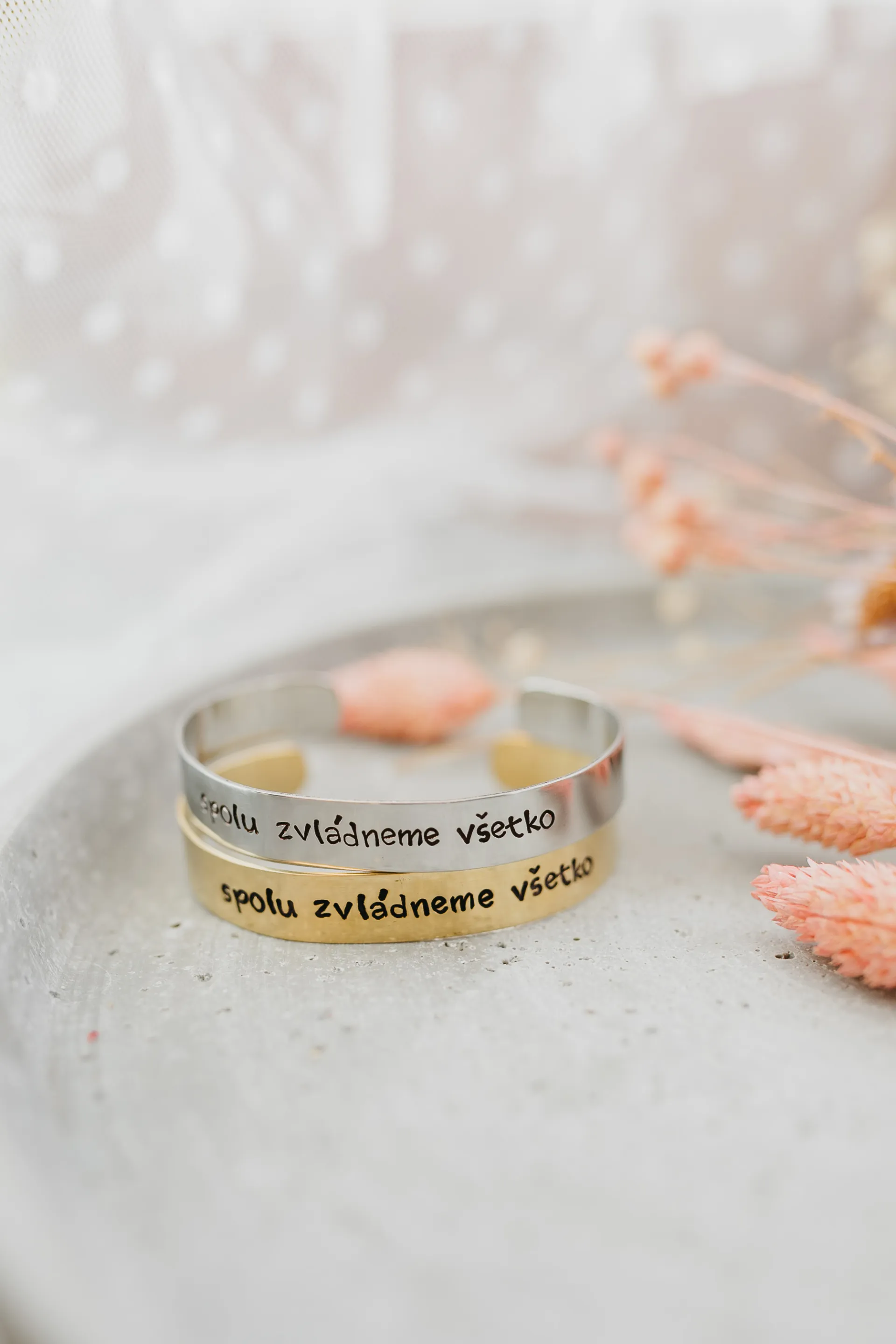Každý náramok je vyrobený ručne, presne podľa vašich predstáv. Keďže to nerobí stroj ale človek náramky sú jedinečne a nie vždy dokonalé. Každé jedno písmeno alebo znak je razené ručne a samostatne.