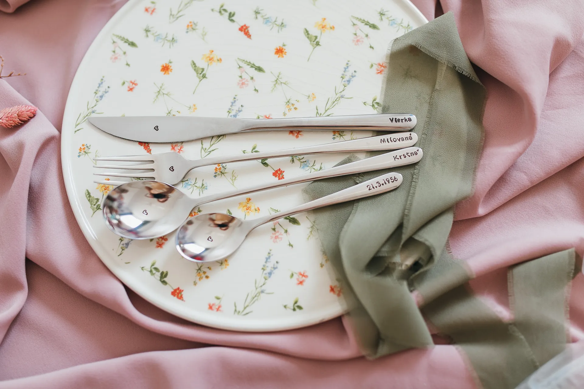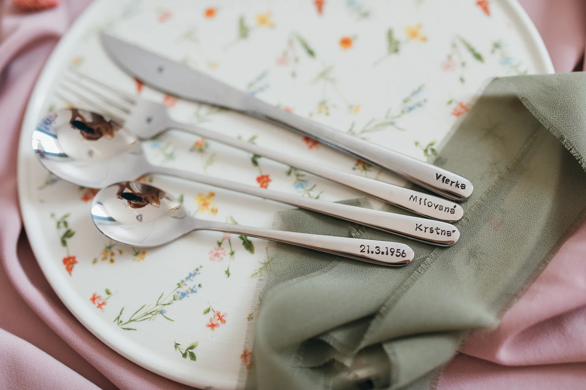 Sada 4 príborov s ručne vyrazeným textom podľa vášho želania